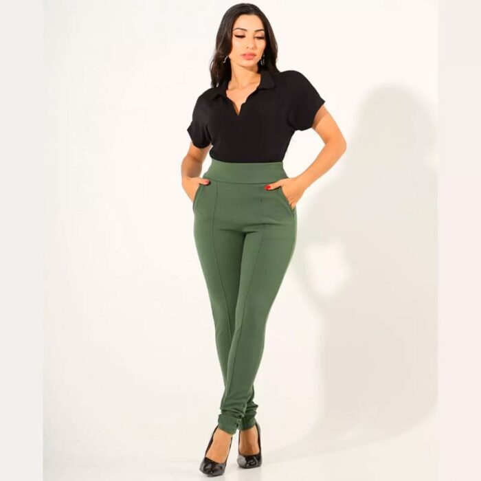 Essa é a nossa Calça Legging Skinny recorte skinny, um modelo confeccionado em tecido Crepe Malha bem encorpado e com excelente elasticidade. Um Designer moderno com detalhes como, Bolsos Faca, Recortes na perna e Cintura Alta.